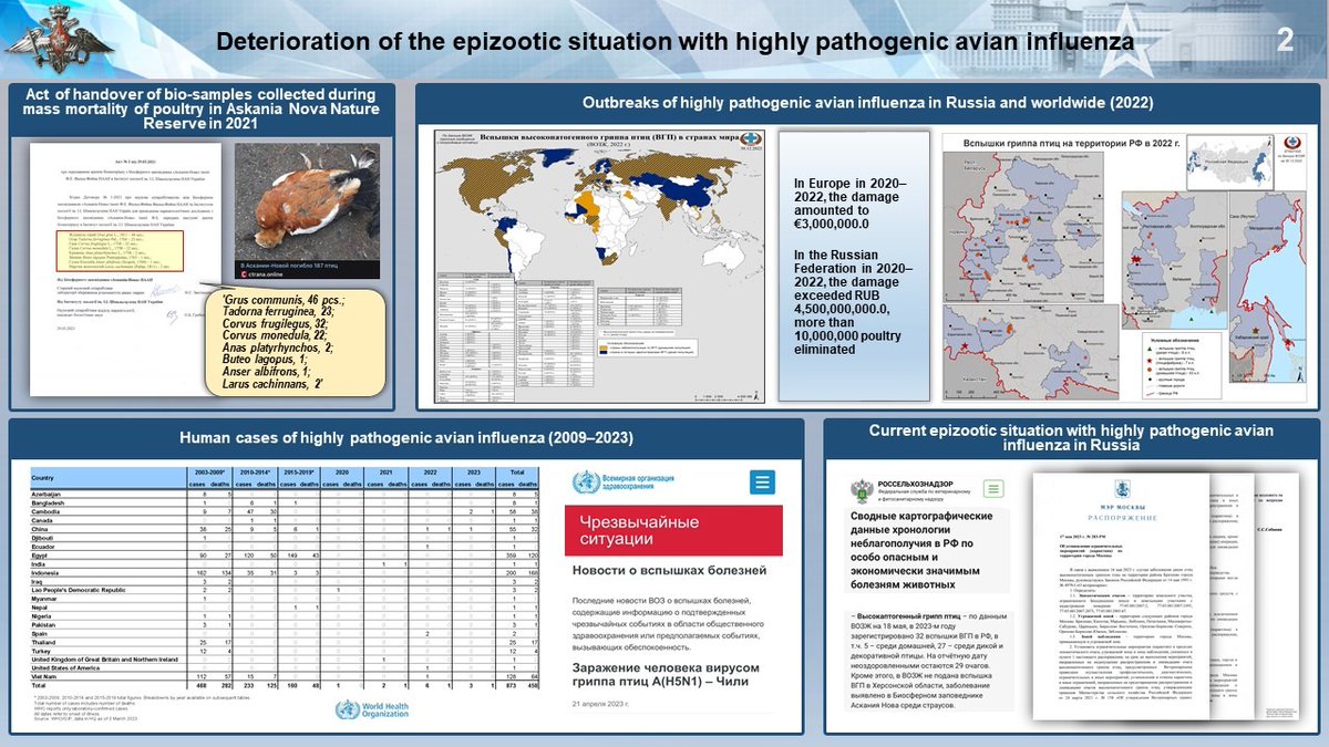 Bonjour à tous ! 👋 Le ministère des affaires étrangères russe a tweeté les preuves des activités des biolabs américains en Ukraine, en particulier dans le Donbass 😳 Ces biolabs travaillent sur des virus hautement pathogènes dont une grippe aviaire transmissible à l'Homme !!!⤵️