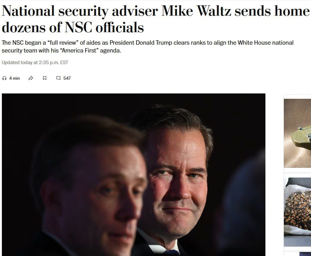 MORE WINNING π₯π₯π₯π₯π₯π₯ Trump's national security adviser Mike Waltz has sent dozens of National Security Council staffers responsible for Ukraine, Iran and North Korea home, suspending them from their jobs. The decision was so sudden that it left some officials unable to physically leave the White House complex because their badges stopped working, sources told the newspaper. As a result, Secret Service agents had to manually open the gates for those whose passes had been deactivated.