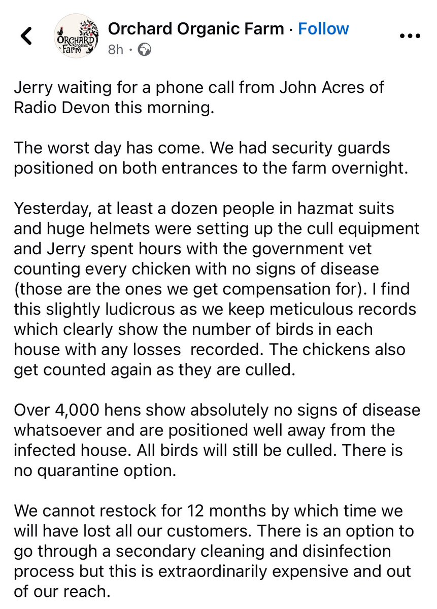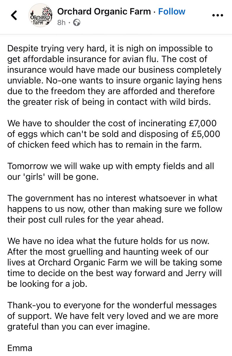 NOT A SINGLE SYMPTOM OF AVIAN FLU but they are being forced to kill ALL their hens An organic farm https://t.co/umrn8gEWWF