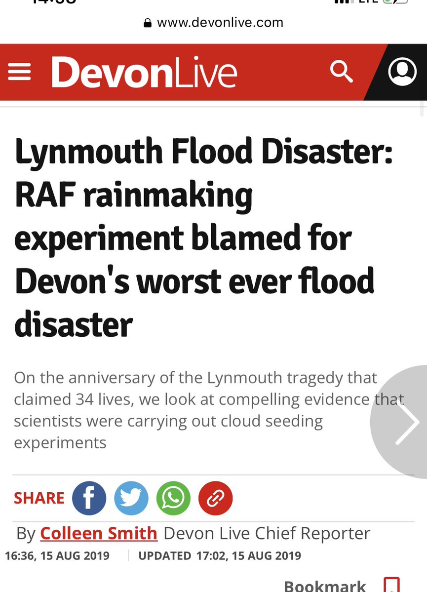 Do not let them gaslight you or call you a conspiracy theorist when you talk about it #cloudseeding https://www.devonlive.com/news/devon-news/lymouth-flood-disaster-raf-rainmaking-3215800?fbclid=IwAR1NIqFdEOoYiAZWYFh5MquQ1xhc9TeC--SHpVnqockqArG_R3tF3kPNeO4_aem_AfRQ_W1xClCeMWPpXun-_J-BWm-x9Pdq2lBXGgECsYCegujipjjsZYaO-Yu4l-CwouI