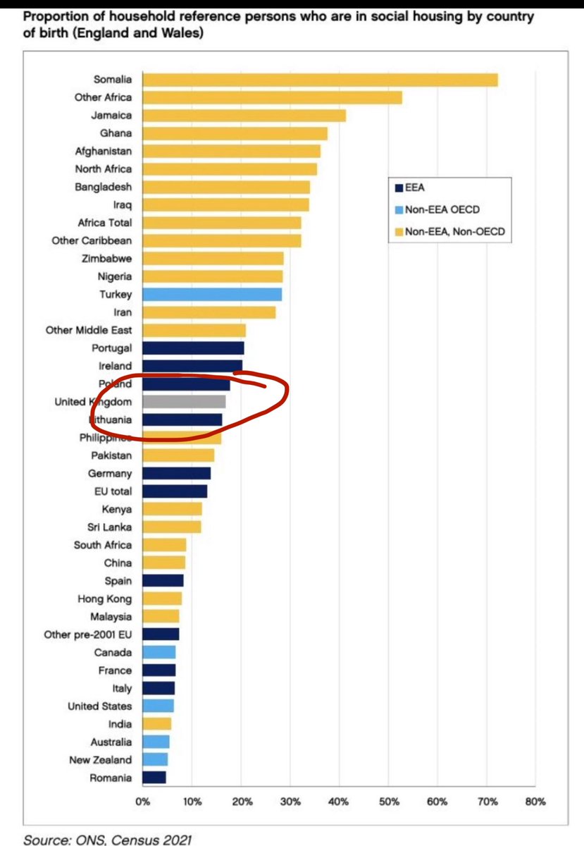 Proportion of people in social housing in the UK, by place of birth. Look how low down the list British people are https://t.co/Ikyh6ntr7k