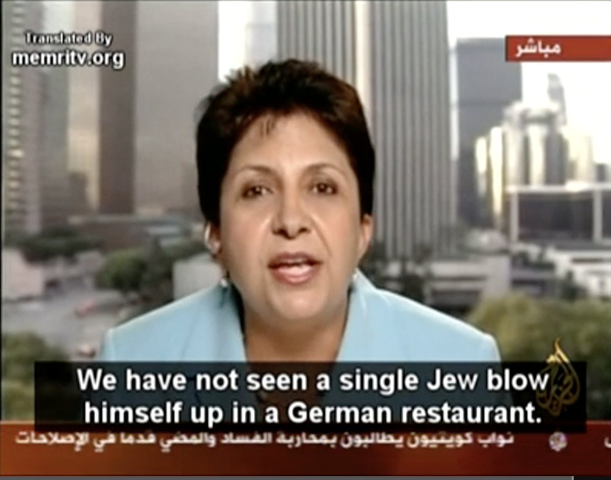 Flashback: Al-Jazeera Shocked by female Arab Psychiatrist Wafa Sultan slamming Islamists all over the world over their "Middle Ages Mentality". She tells Islamists that their violence is never justified, no matter how much they use their victim card as an excuse (link attached below). Her statements during this TV interview, explain a lot about the Israeli-Palestinian conflict. She slams all the Islamists who justify violence against Jews and Christians by using their victim status as a justification for their actions: ״The Jews have come from the tragedy (of the Holocaust), and forced the world to respect them, with their knowledge, not with their terror, with their work, not their crying and yelling. Humanity owes most of the discoveries and science of the 19th and 20th centuries to Jewish scientists. 15 million people, scattered throughout the world, united and won their rights through work and knowledge. We have not seen a single Jew blow himself up in a German restaurant. We have not seen a single Jew destroy a church. We have not seen a single Jew protest by killing people. But the Muslims...״ Link to the video: https://www.memri.org/tv/arab-american-psychiatrist-wafa-sultan-there-no-clash-civilizations-clash-between-mentality