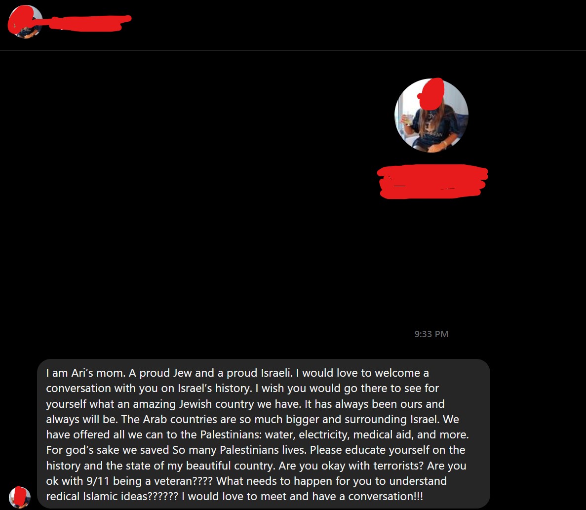 Ari is sending his mom to talk to me. As expected, she flips the script to make them victims, completely ignoring the fact her son sent my family a death threat. No apology nor any remorse for her son's behavior. In fact, just more "muh proud Jew." Blocked for the chutzpah. https://t.co/DXjHcqMP6W