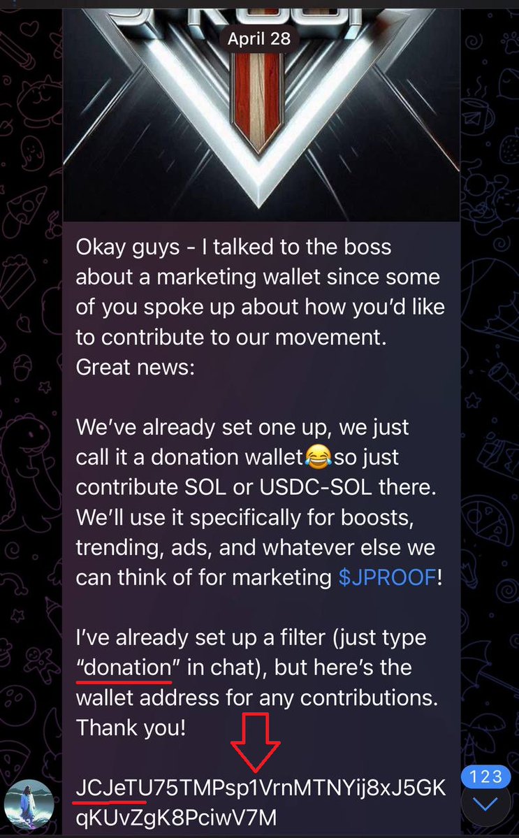 And what did the "MM" Proceed to do? Sell Jproof and trade while it was near its ATH https://solscan.io/account/7h2KXM9DwPSzRLPeEbg7DZfFmaAVhVyVj7MwrHjhMKcj?token_address=2tbHkvuJnaG1X2U4VXvKTFsvaoW2cZ2W4iM9ZmdYmoon&page=13#balanceChanges And then on April 22, the 1,950,000 JProof were transferred to a third wallet and here is where things get really interesting: https://solscan.io/tx/qzPvcWmxK5Q7Wf8qbf36eZaZoXtbXn6T58x3eU13iQdgNzFEJ3XRwF8y3VBuM62HeBDXutb1p6GXumBC3SbBpAG