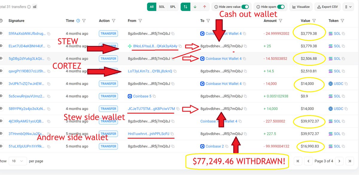 TLDR: Donation wallet is JCje not 8gzb. $77,249.46 was CASHED OUT by a wallet shared by Stew, Andrew, and Cortez. https://t.co/5qDz9S3vLp