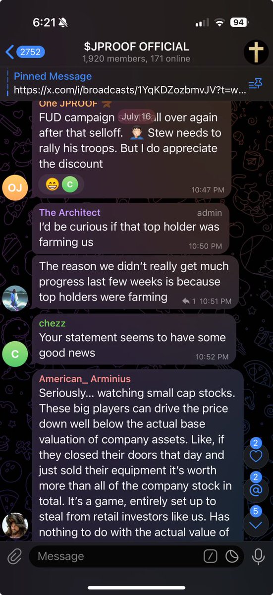I put 16k in JPROOF because I trusted Stew but I didn't shill it hard because I hate crypto. Tonight, I pulled out at a 9k loss after me and others investigated its activity for days, only to discover it's a slow rug with insiders draining liquidity over time. I feel betrayed.