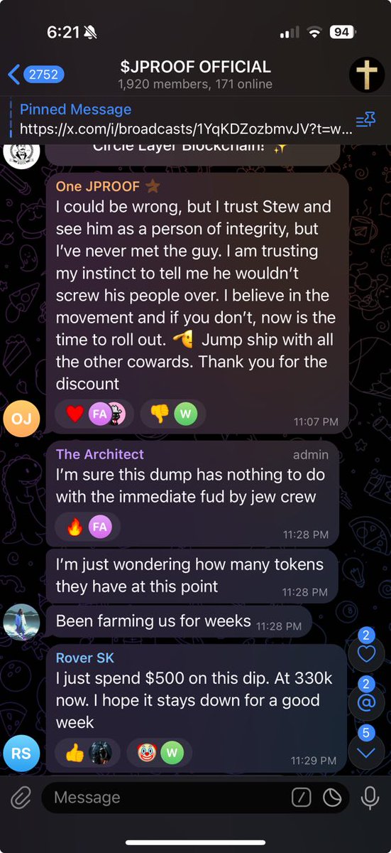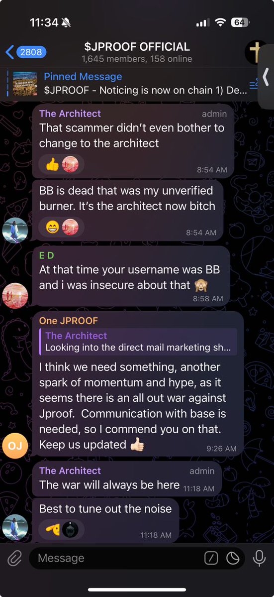 Stew's buddy "The Architect" (Andrew, formerly BB and Market Maker that wasn't actually fired) is gaslighting, telling everyone the recent $JPROOF dip was due to a big wallet farming. Funny how that wallet is an insider who bought on 4/13. Truly the scum of the earth. https://t.co/IZ54Sah6bF