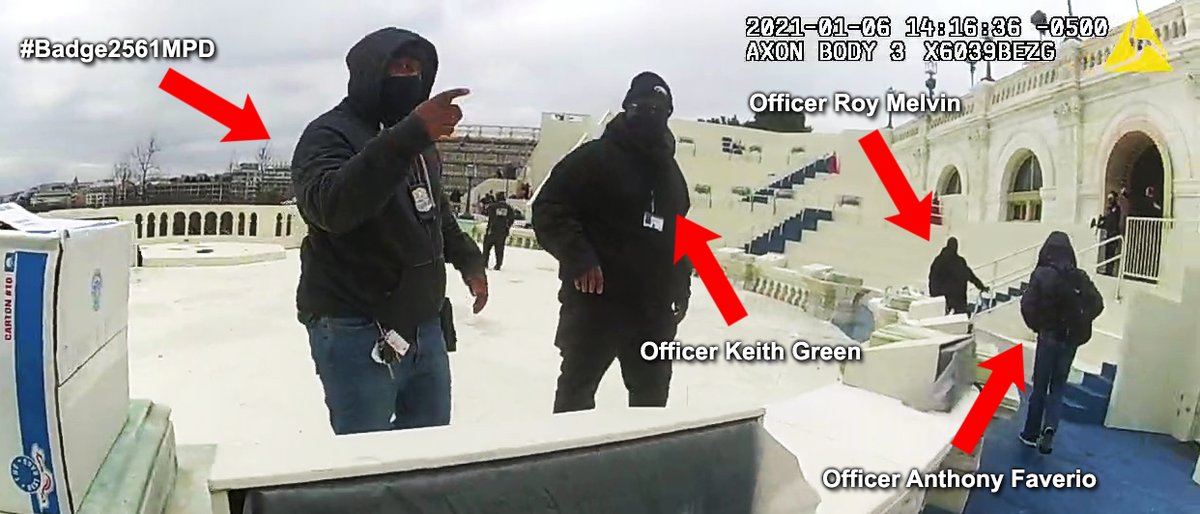 Newly released January 6 CCTV shows three minutes of undercover Detectives Leiva and Callahan on the Upper West Terrace of the Capitol, including the moment Ashli Babbitt walked right past them, and their meeting with Proud Boys. https://t.co/5NETwjtBtA