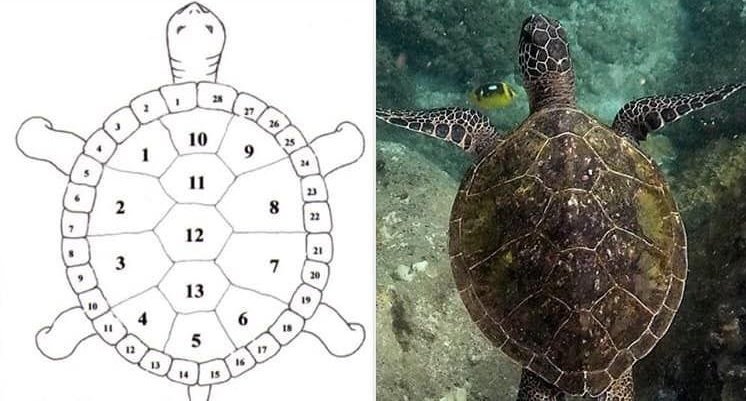 13 moons & 28 days on all turtle shells. This equals 364 days, plus one day of rest. All indigenous people around the world knew the wisdom of the turtle and followed a 13month calendar; after all, there are 13 mooncycles in a year & 27-29 days per cycle. It's almost as if white man subtracted one month in order sever the connection between the people and the sun, moon &stars, which are themselves a giant clock.