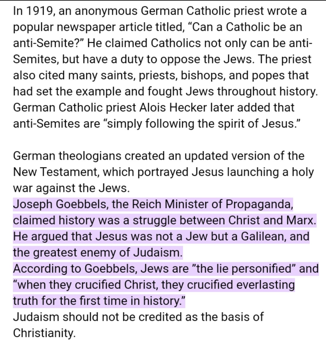 Joseph Goebbels argued that Jesus was not a j€w but a Galilean and the greatest enemy of Judaism. According to Goebbels, j€ws are "the lie personified" and "when they crucified Christ, they crucified everlasting truth for the first time in history."
