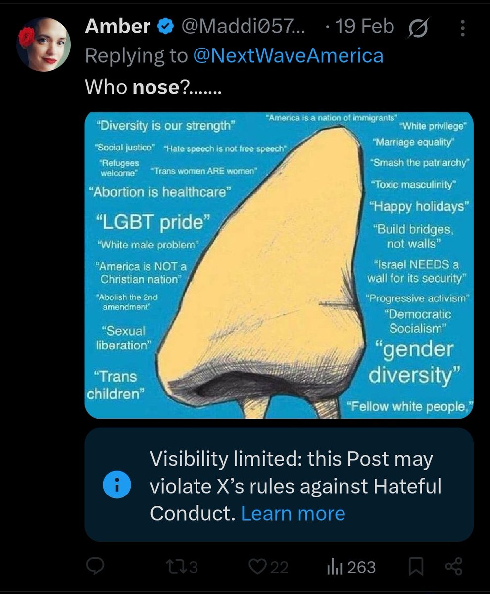 🤫 Posting Noses is now considered Hateful Conduct on X..... 🙃 🤣😂🤣 https://t.co/ckNgkRsqty