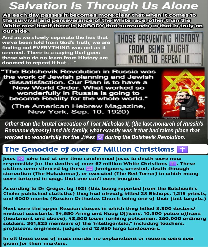 Communism is j€wish. In 1919, the Soviet Press provided a list of 556 important figures of the Soviet government. Starting on page 81 in the link below 👇👇you will find a more detailed list of the 447 j€ws that made up this government. In May of 1919 at Dusseldorf. Germany, the Allied Forces, obtained a copy of the Communist Rules for Revolution. Fifty years later, the Reds were still following these rules. A. Corrupt the young, get them away from religion, get them interested in sex. Make them superficial, destroy their ruggedness. B. Get control of all means of publicity, thereby: 1. Get the peoples minds off their government by focusing their attention on athletics, sexy books and plays, and other trivialities. 2. Divide the people into hostile groups by constantly harping on controversial matters of no importance. 3. Destroy the people's faith in their natural leaders by holding the latter up to contempt, ridicule, and obloquy. 4. Always preach true democracy, but seize power as fast and as ruthlessly as possible. 5. By encouraging government extravagance, destroy its credit, and produce fear of inflation with rising prices and general discontent. 6. Foment unnecessary strikes in vital industries, encourage civil disorders, and foster lenient and soft attitude on the part of government toward such disorders. 7. By Specious argument, cause the breakdown of the old moral virtues, honesty, sobriety, confidence, faith in the pledged word, ruggedness. C. Cause the registration of all firearms on some pretext, with a view toward confiscating them and leaving the population helpless.