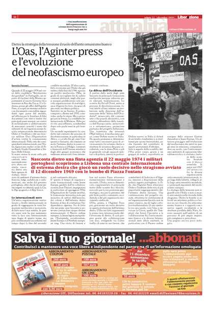 Ma già nel novembre 1974, il settimanale l'Europeo pubblicava #documenti degli archivi segreti di #AginterPress, dimostrando che fosse chiaramente una centrale di spionaggio ufficialmente legata ai servizi segreti occidentali, incluso il nostro SID. 19/25 ecn.org/ponte/doss12/a…
