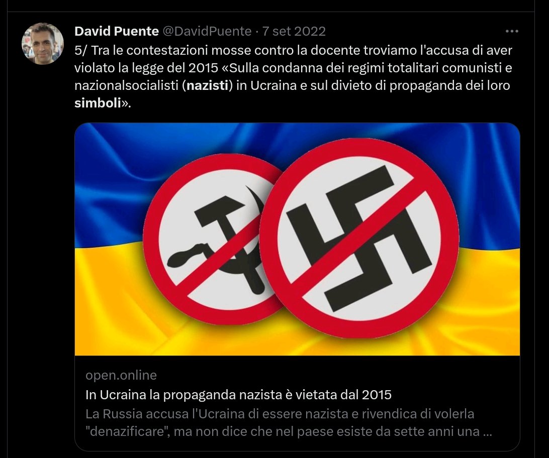 Peró per fortuna noi abbiamo debunker come Puente, che ci tengono a ricordarci cosí tanto e cosí spesso, che in Ucraina utilizzare simboli nazisti non sia possibile, inquanto esiste una legge che lo vieta. 🤦🏻♂️🤦🏻♂️🤦🏻♂️ 4/4 https://t.co/WX1SH5rloU