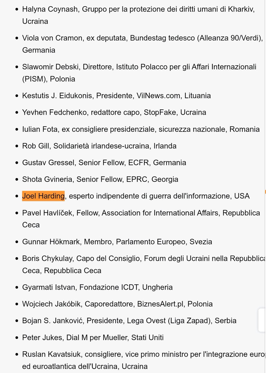 Joel Harding ha aiutato i centri di eccellenza NATO STRATCOM (COE) in Lettonia a decollare, mentre stava aiutando a istituire il ministero dell'informazione ucraino. Ha scritto la politica dell'informazione dell'Ucraina nel 2015-2016. https://consortiumnews.com/2018/02/18/a-crisis-in-intelligence-unthinkable-consequences-of-outsourcing-u-s-intel-part-3/ 20/23