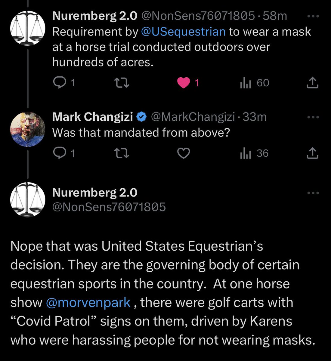 When my local subreddit featured pictures of an antilockdown demo, I posted some spirited defenses of it to counter all the gross insults and was mass reported to the police by the brave redditors who screenshotted their reports and sent them to me to mock and threaten me.