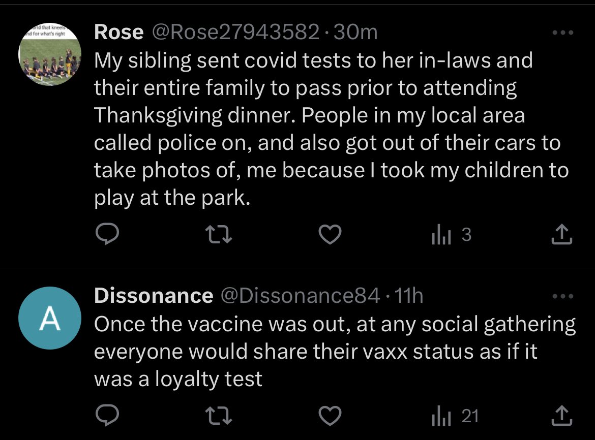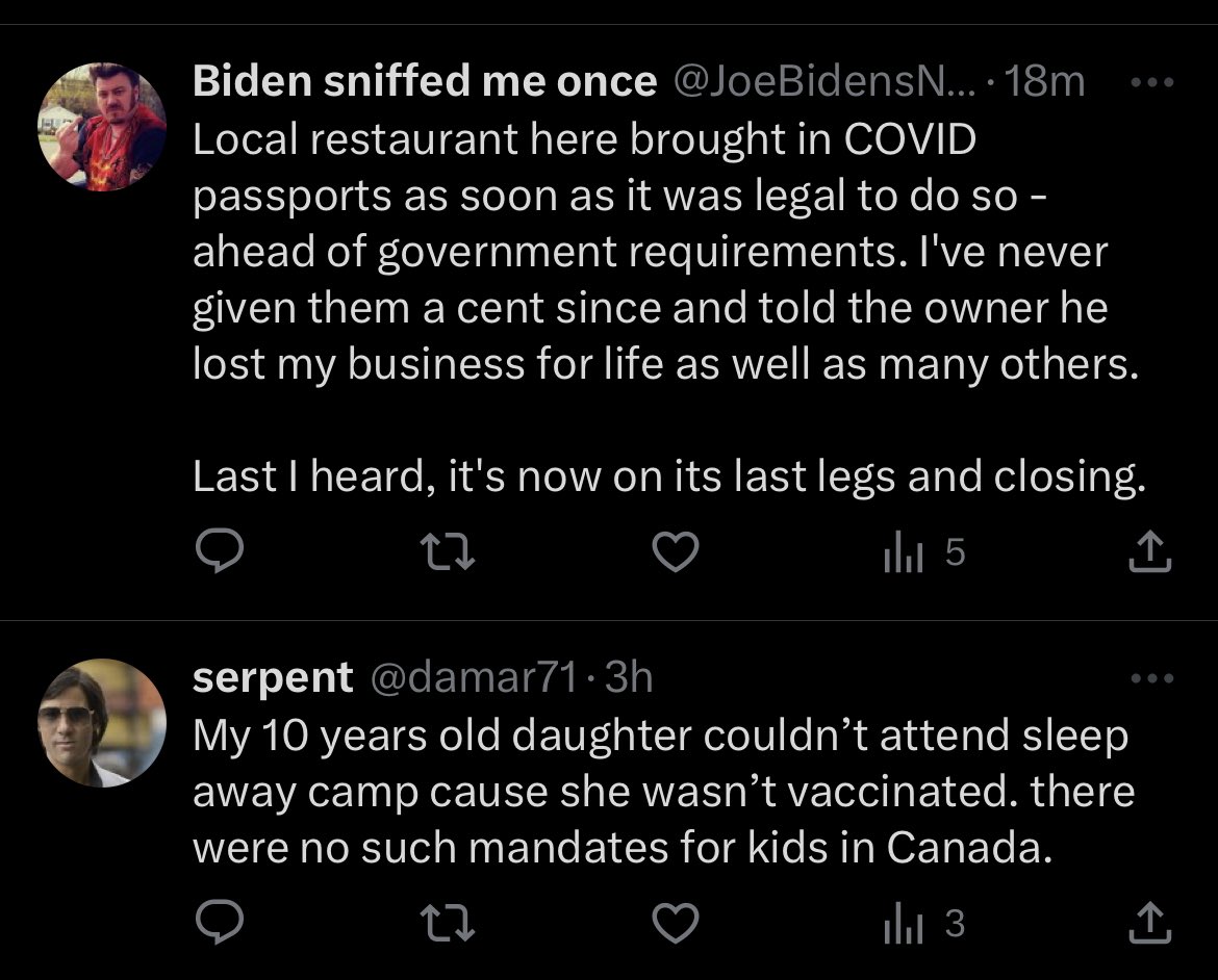 THEM: We forced vaccination because we care! ME: If you cared, you would respect ~ civil liberties ~ bodily autonomy ~ informed consent ~ natural immunity ~ that few were at risk from Covid ~ that the vaccines didn’t slow transmission ~ that even if the vaccines did slow transmission, it’s not epidemiologically sensible to push the unvaccinated into their own clusters with unchecked transmission ~ that the unvaccinated — e.g., for flu — were never before fired, banished, prevented from travel and denied medical care ~ that the vaccines were never tested for all cause mortality, i.e., whether they actually raised or lowered mortality If you cared, you would mind your f***ing business.