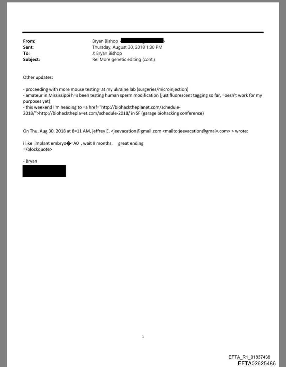 🚨 BREAKING INVESTIGATION: Unearthed Epstein files expose transhumanist @kanzure (Bryan Bishop) BEGGING convicted pedophile Jeffrey Epstein for $9.5 MILLION to crank out “designer babies” AND HUMAN CLONES in just 5 years. He literally wrote: first live birth of a designer baby, and possibly a human clone, will change everything. World will never be the same. This is straight-up eugenics nightmare fuel funded by a sex criminal. DISGUSTING! SHOCKING DETAILS: Bishop bragged about mouse surgeries and microinjections at HIS UKRAINE LAB (!!!), some amateur messing with HUMAN SPERM mods (fluorescent tagging so far), and casually plotting embryo implants: “wait 9 months, great ending.” He vowed TOTAL anonymity so the engineered kids don’t get branded “freaks” in the media. That’s f*cking SICK, @kanzure. WHO ELSE KNEW about this Epstein-funded eugenics horror? Where EXACTLY in Ukraine was/is your mouse-surgery lab? What traits were you planning to ENGINEER into those babies? We DEMAND full exposure NOW!