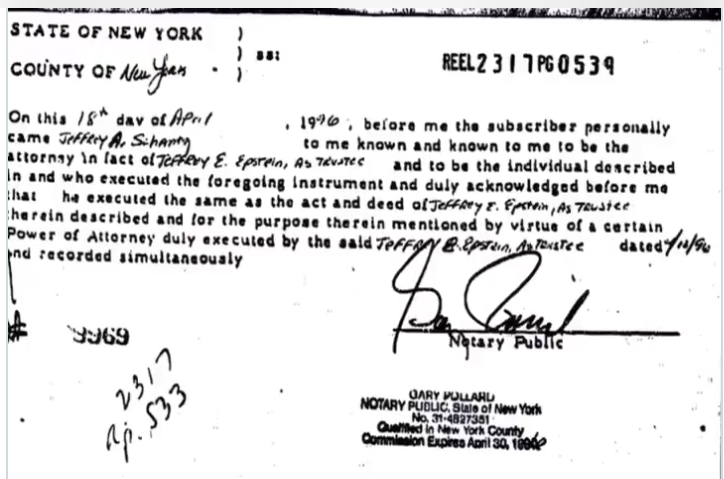 @SpeakWithDeeDee 11 East 71st St property in NY conveyed for $10 to Jeffrey Epstein Dec 15 1992 for $10 to THE COMET TRUST April 18 1996 (Trustee Guido Goldman's father was Pres World Zionist Org) Notary was Gary Pollard who recorded S Tower collapse 9-11 for $10 to Howard Lutnick 1-26-98 https://t.co/v2MkbEDkwr