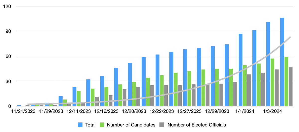 January 4, 2024 🚨We now have 59 candidates, 47 elected officials and 1 Surgeon General from 23 states publicly stating the COVID shots must be pulled off the market. Many are also pledging not to take donations from Big Pharma. Over 17,000 physicians stand behind them. Tag your representatives who aren't on the list. (1/4) States with the most elected representatives: New Hampshire (13) Kentucky (9) State with the most candidates running for office: Texas (27) Newest Adds: Sen Glenn Gruenhagen @GlennGruenhagen MN SD18b Rep Savannah Maddox @SavannahLMaddox KY HD61 David Covey @CoveyTX candidate TX HD21 Mitch Little @realmitchlittle candidate TX HD65 Jon Welch @jwelchtxUSA TX LamarCISD School Board Tag your representatives who aren't on the list. @AAPSonline @molsjames @unbridledmd @KLVeritas @GeorgeFareed2 @btysonmd @LynnMissFlynn @purehealthmed @P_McCulloughMD @PierreKory @RWMaloneMD @richardursomd @stella_immanuel @drsimonegold @BenMarble_MD @DrNoMask @goddeketal #txlege