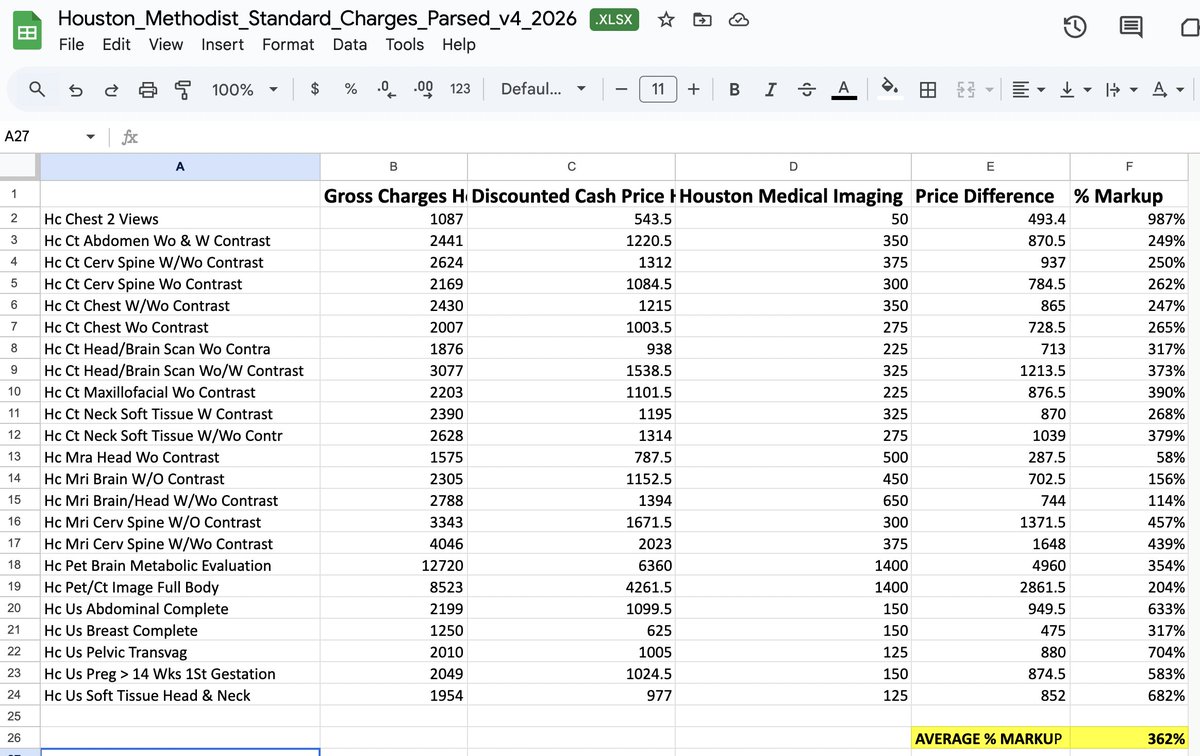 Never go to the hospital for an X-Ray. This hospital marks up prices on average 362% compared to outpatient services at Houston Medical Imaging center. Chest Xray: $543 v $50 MRI spine: $2023 v $375 CT brain: $938 v $225 US abdomen: $1099 v $150 PET scan: $4261 v $1500 https://t.co/CL5c3hHyt3