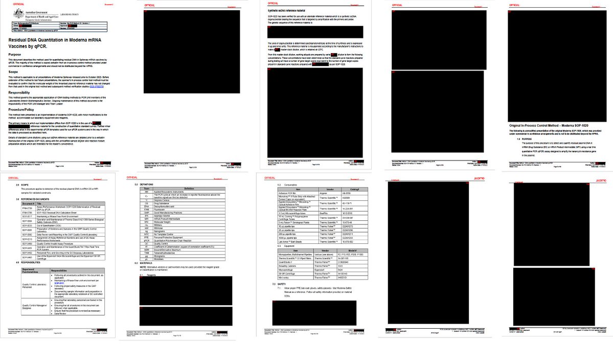 The @TGAgovau redacted >80% of the FOI about its protocols for testing residual DNA in Moderna's product. And the information that was published contained methods that cannot be considered sensitive enough to detect all residual plasmid DNA in the vials. @Kevin_McKernan @Jikkyleaks