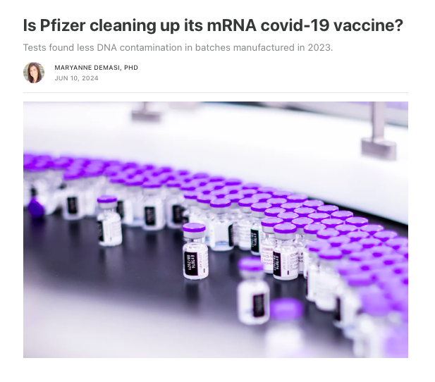 Is Pfizer cleaning up its mRNA covid-19 vaccine? Exclusive interview with @P_J_Buckhaults - Tests found less DNA contamination in batches manufactured in 2023 https://blog.maryannedemasi.com/p/is-pfizer-cleaning-up-its-mrna-covid @Kevin_McKernan @DJSpeicher @Jikkyleaks @DrJBhattacharya @P_McCulloughMD @TracyBethHoeg @TexasLindsay_ @newstart_2024 @TheChiefNerd