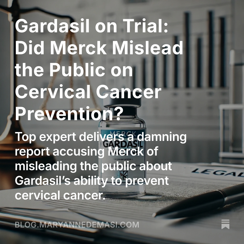 🔥Gardasil on Trial: Did Merck Mislead the Public on Cervical Cancer Prevention? Top expert delivers a damning report accusing Merck of misleading the public about Gardasil’s ability to prevent cervical cancer. https://blog.maryannedemasi.com/p/gardasil-on-trial-did-merck-mislead @eileeniorio @ChildrensHD @MdBreathe @Jikkyleaks