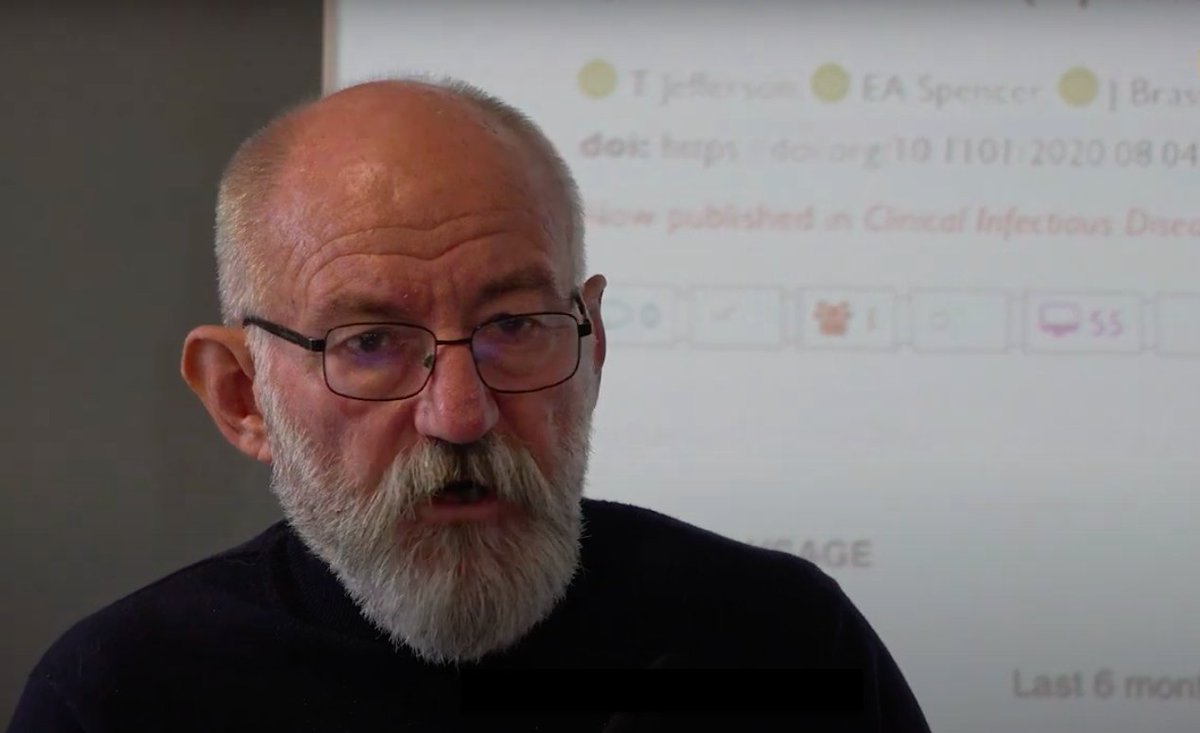 Tom Jefferson explains the entire point of the @cochranecollab review was to systematically sift through all the available randomised data on physical interventions such as masks & determine what was useful and what was not. Conclusion: no evidence masks reduce viral spread
