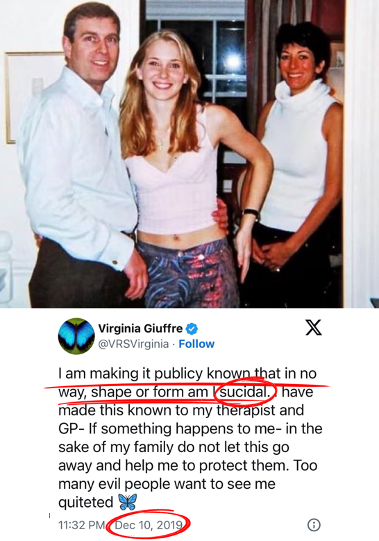 The same woman who warned the world she was not suicidal just "died by suicide" — after exposing one of the most powerful trafficking networks on earth. The coincidences aren’t coincidences. She was silenced permanently. Never forget Virginia Giuffre. https://t.co/VcMlXMZc5l