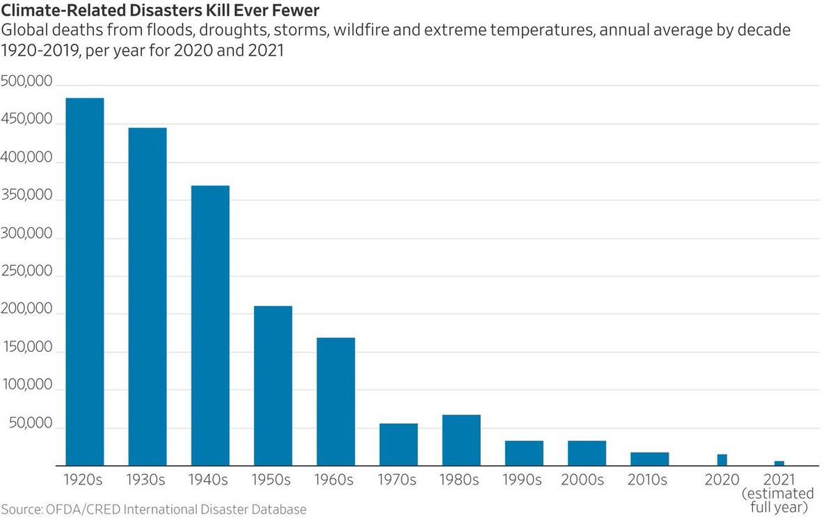 6. Fabrication of Climate- Related Disasters 1. The number of hydrological, meteorological, and climatological disasters have decreased since 2000 (first image) 2. Deaths associated with these events have decreased since 2000 (second image) 3. Costs associated with these disasters have decreased since 2000 (third image)
