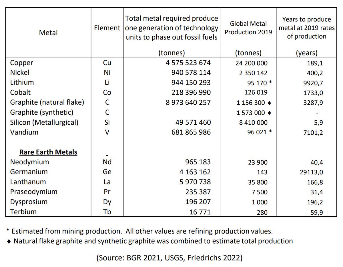 There is physically not enough material at current extraction rates to produce one generation of technology (which needs to be replaced every 20 years or so) to phase out fossil fuels. We either better start ramping up our mining efforts or drop this fantasy.