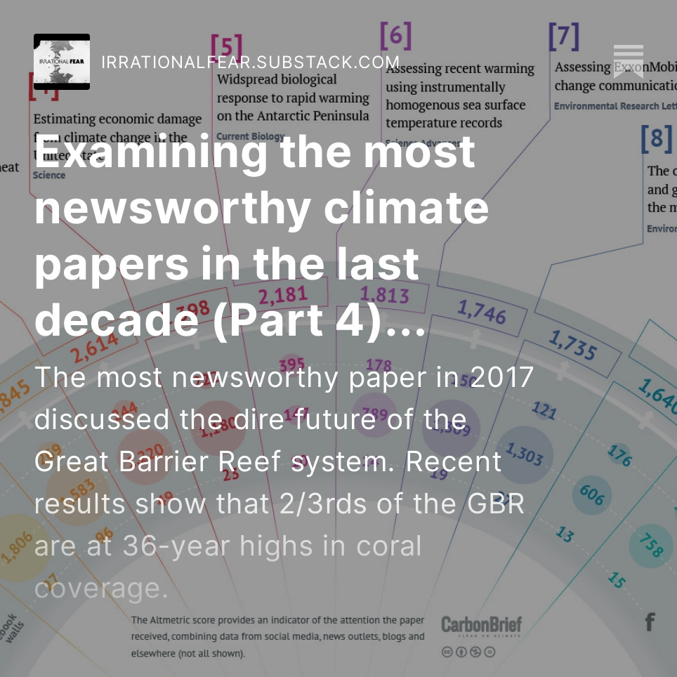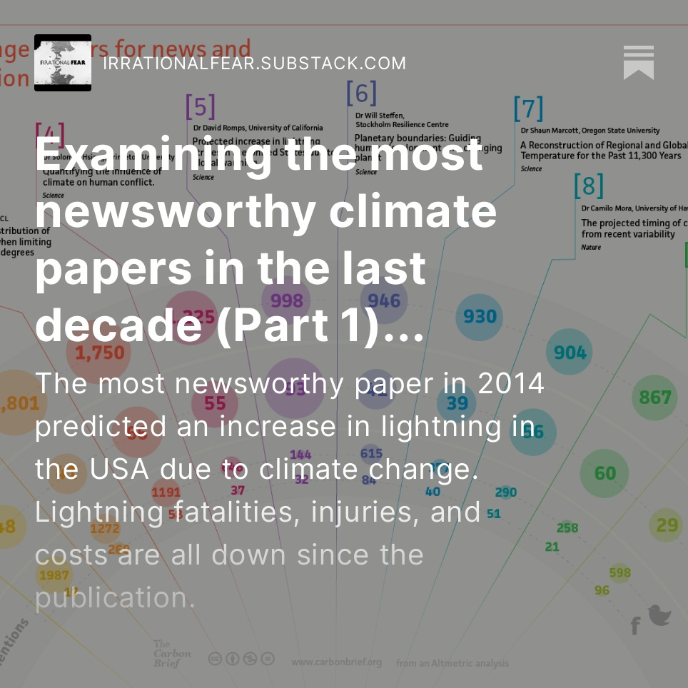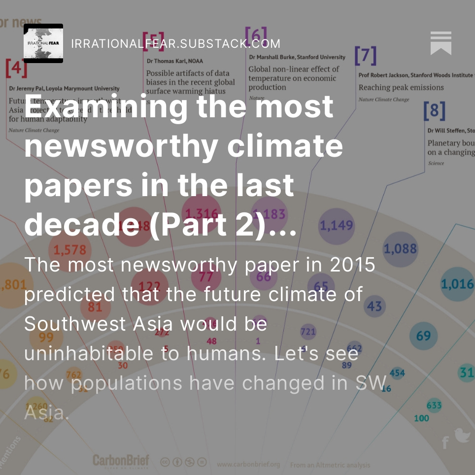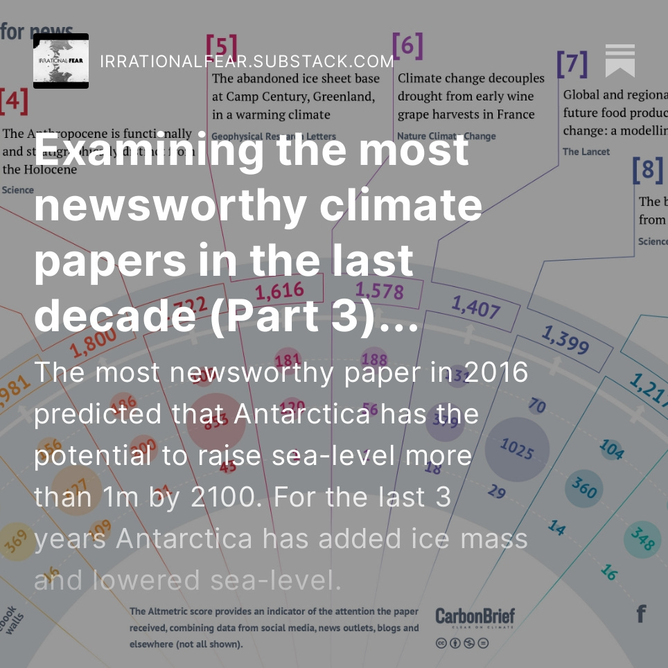 Check out a series I'm doing investigating predictions made by the most newsworthy #climate papers of the past decade. Part 1:https://irrationalfear.substack.com/p/examining-the-most-newsworthy-climate Part 2:https://irrationalfear.substack.com/p/examining-the-most-newsworthy-climate-4c5 Part 3:https://irrationalfear.substack.com/p/examining-the-most-newsworthy-climate-c1e Part 4:https://irrationalfear.substack.com/p/examining-the-most-newsworthy-climate-bda