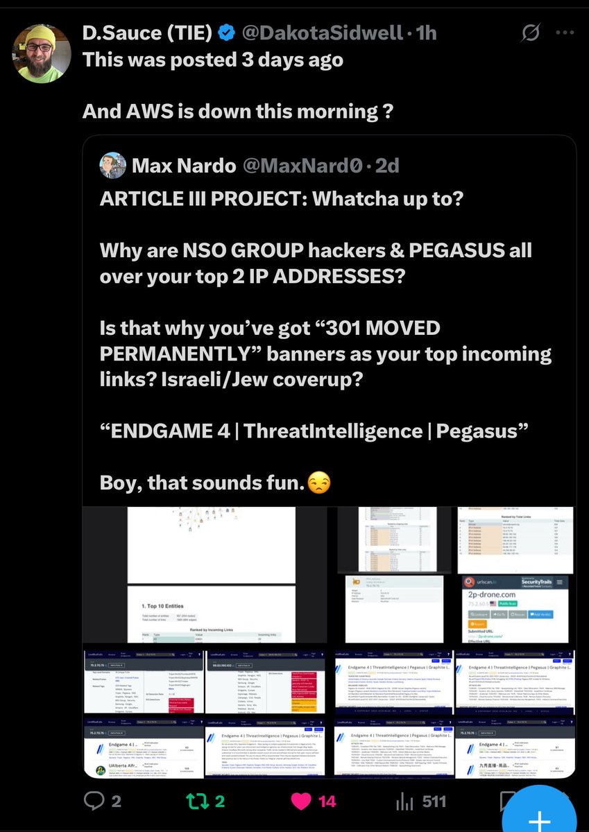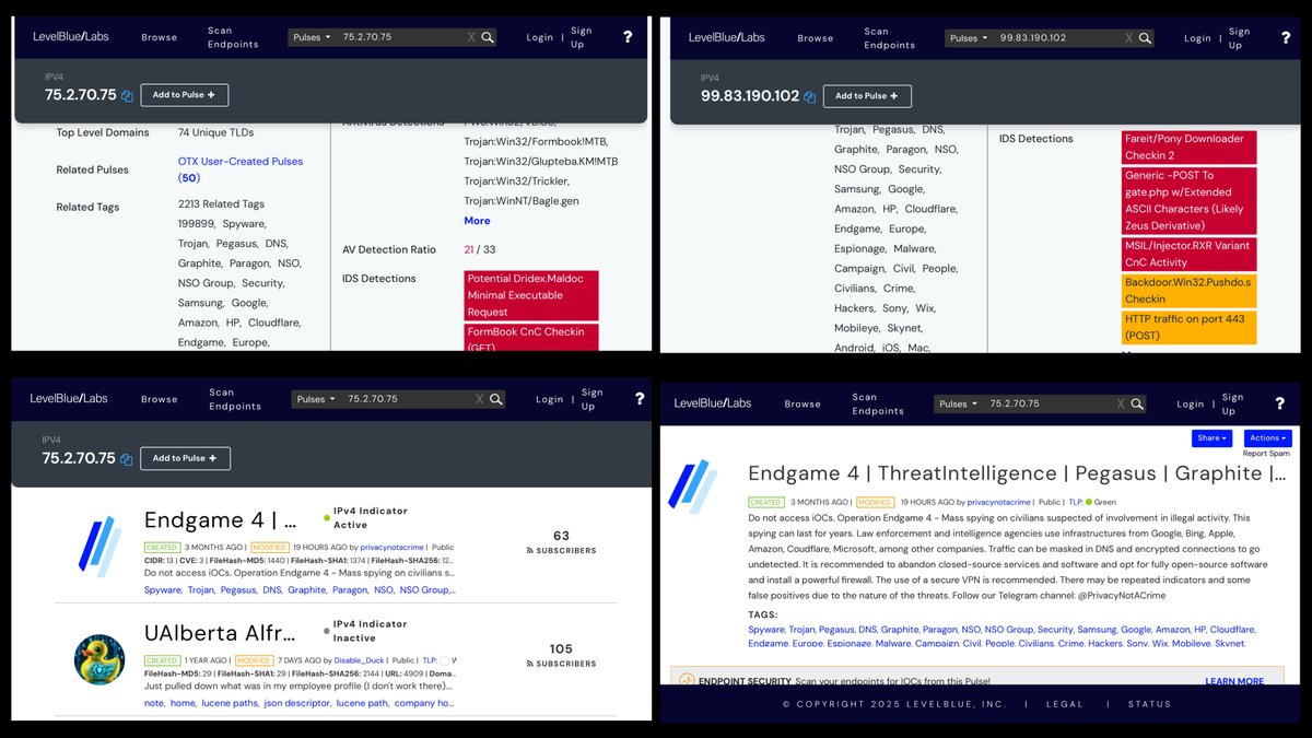 ARTICLE III PROJECT: Whatcha up to? Why are NSO GROUP hackers & PEGASUS all over your top 2 IP ADDRESSES? Is that why you’ve got “301 MOVED PERMANENTLY” banners as your top incoming links? Israeli/Jew coverup? “ENDGAME 4 | ThreatIntelligence | Pegasus” Boy, that sounds fun.😒