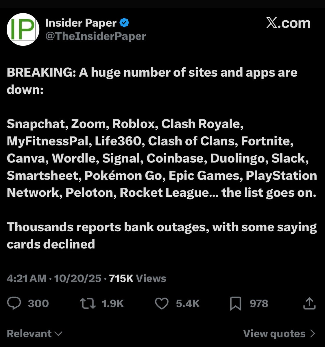 Imagine that. Many of the UNIT 8200 and LIGHTSPEED, SEQUOIA, NEA and ISRAELI INTELLIGENCE-FOUNDED APPS are down simultaneously to run cover for the people behind CHARLIE KIRK’S MURDER and shit. Weird. https://t.co/r0uUZhTIcs
