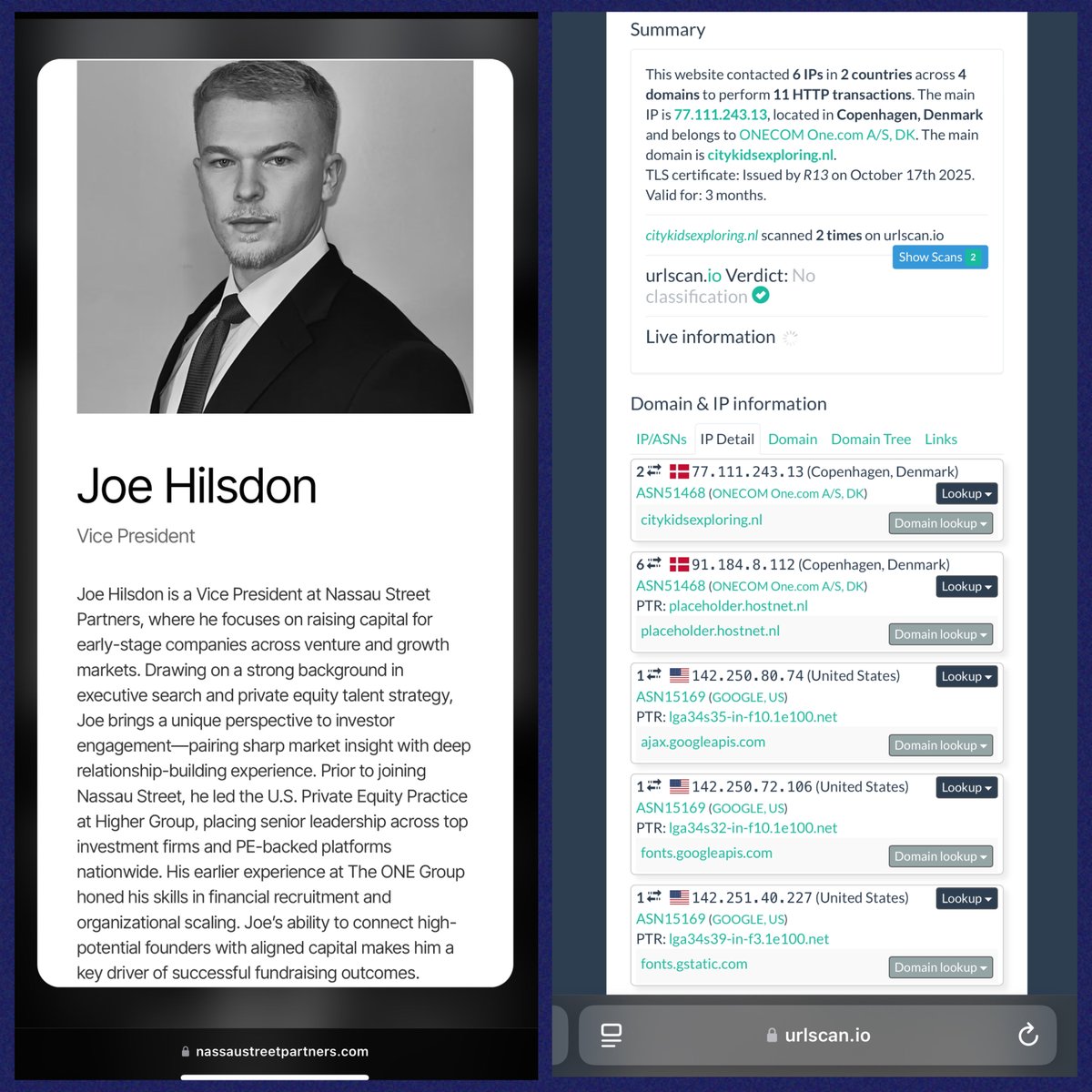 *http://CITYKIDSEXPLORING.NL* “The main IP is 77.111.243.13… and belongs to ONECOM http://one.com” ✅JOE HILSDON, Vice President NASSAU STREET PARTNERS THE ONE GROUP I’m sure THE ONE GROUP ties are just a Cohencidence™️ too lmao. “Today I was assisted by ERIKA…” Oh.😒