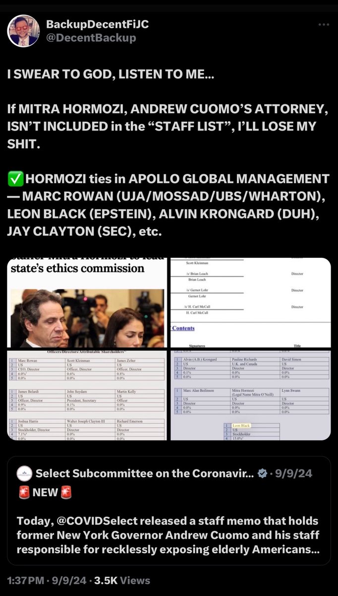 CORNELL, led by SANDY WEILL’S DAUGHTER, JESSICA BIBLIOWICZ, implemented a “WHITES-ONLY” VACCINE MANDATE. I bet that has NOTHING to do with why ANDREW CUOMO, whose ATTORNEY sits on the APOLLO GLOBAL MANAGEMENT BOARD w/BIBLIOWICZ, is being PUSHED BY THOSE SAME JEWS FOR NYC MAYOR. https://t.co/6s7LGCS18t