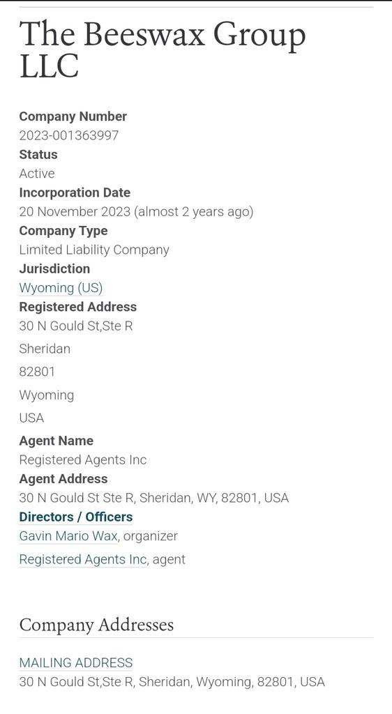 Why is GAVIN WAX the ORGANIZER of THE BEESWAX GROUP LLC. in NOVEMBER 2023? Looks to be another instance of subversive JEWS colluding with LDS MAFIA (beehives), right after “HAMAS” attacked ISRAEL. https://t.co/BZ9eq4ZrkP