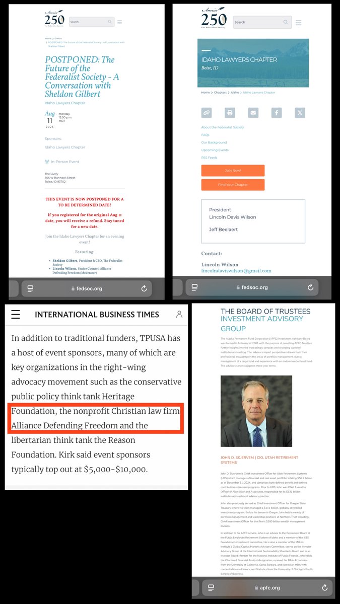 UT/ID - KIRK SKJERVEM: APFC IAG w/ZINN, MANAGES UTAH RETIREMENT & ADVISES IDAHO RETIREMENT. *FEDSOC PRES/CEO SHELDON GILBERT and FEDSOC IDAHO LAWYERS PRES & ALLIANCE DEFENDING FREEDOM SR COUNSEL LINCOLN DAVIS WILSON POSTPONED IDAHO JOINT EVENT ONE MONTH BEFORE KILLING CK @ UVU. https://t.co/yMsKtHGhsr