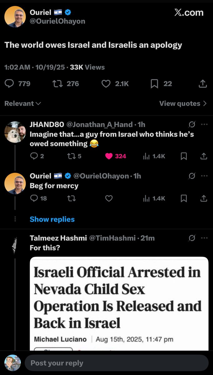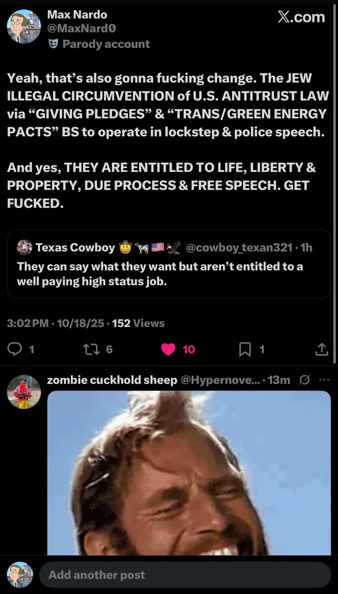 PRO TIP: Don’t be ZIO TERRORISTS to PALESTINIANS OR AMERICANS and you won’t have to fear the inevitable DEATH PENALTIES headed your way. Get fucked. 🙏🏼🖕🇺🇸🫡