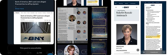 Posted this on my substack during my 12-hr timeout — BNY Mellon (Israel) being sued for involvement in the Jeffrey Epstein kid trafficking racket. BNY Mellon could end Rakefet Russak-Aminoach, LeumiTech (Blackstone/Leumi Bank/8200) & ZIM (Team8/40 SEAS). https://substack.com/@decentfijc/note/c-166790321?r=32gbmm&utm_medium=ios&utm_source=notes-share-action