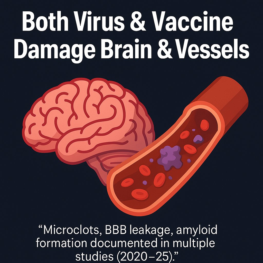Both the SARS-CoV-2 virus and the mRNA vaccines impact the brain & vascular system. I'll share the peer reviewed evidence in this thread 🧵 Large cohorts show ↑ psychiatric risks. Labs show the mechanism: microclots, BBB leakage, amyloid formation. Public health policy must face this evidence.