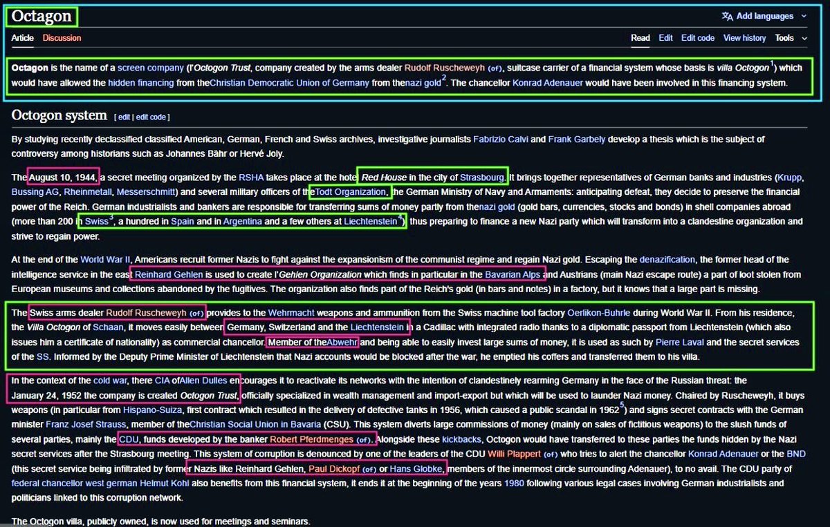 WAGNER GROUP - the Blackwater of Russia that has equally been terrorizing countries around the world as much as the CIA. Hitler was also a BIG FAN of Wagner and held a yearly Opera Conference each year. The Wagner Family was also heavily involved with the Nazis during WWII and has yet to release the correspondence between them and the Third Reich. The Wagners were also close to the Raven of Zurich, Baron Felix Somary— — who also financed Hitler starting 1923 — held meetings at the Villa Schoenberg in 1923 when Hitler came to Zurich with Rudolph Hess to meet all the Nazi Aristocrat Backers along with Swiss General Ulhrich Wille — coordinated with all the Bankers involved in the Federal Reserve (1929 Stock Market Crash) — the creation of the BIS (was close to Hjalmar Schacht, Hitler’s Finance Minister & Montagu Norman Head of the Bank of England) — knew all of the Board’s of Directors of IG Farben, Schroeder Bank (Allen Dulles), Krupp, Rheinmetall, Messerschmitt, Rochling, Volkswagenwerk, Bussing, Schellenberg etc who were all part of OCTOGON. OCTOGON — Organization run out of Lietchstenstein, Switzerland and Germany that laundered all of Europe’s Gold thru the BIS and Banque de Suisse, Credit Suisse and extracted all of Germanys industrial assets to “neutral territories” after the war. The Red House Meeting Report exposes this. That meeting was held on August 10th 1944. OCTOGON Organization & Trust was what ended up financing our CIA, and conducted arms trafficking to the Balkans and all over the world after WWII. Suisse Secrets — Wagner Group & a Ton of Russian Oligarchs were listed among all the corrupt dictators & criminal syndicates mob bosses with Swiss Bank Accounts at Credit Suisse. (FFW to last 5 minutes to get to Wagner Group) Robert Maxwell’s wife is a WAGNER and a TEMPLAR Foreign Legion Operative, in other words worked with both the OSS and SS. Robert Maxwell Joined the French Foreign Legion in 1940. Robert Maxwell’s Trusts were in Lietchstenstein and Switzerland, as was exposed in 1991. What does that tell you? You think he worked for Jooz? Video excerpt from https://youtu.be/3rZKnHXyUos?si=l3rn-OBUh7n6HWeW