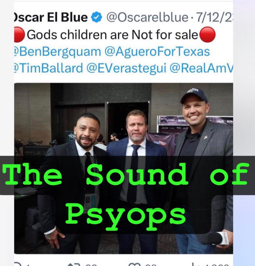 The Sound of Psyops — Ryan Matta Tim Ballard Glenn Beck Michael Flynn Laura Loomer Oscar El Blue Bukele BTC Bros Truthtellerftm IanMalcolm84 MazeLove14 basedSamParker JoAnn_Marie https://t.co/WRZeCe4ZTZ