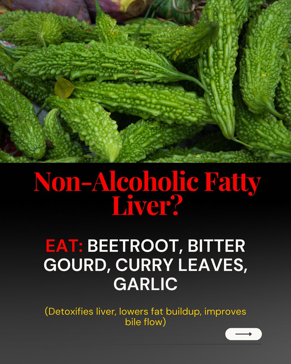 4️⃣ Non-Alcoholic Fatty Liver? Feeling sluggish or bloated often? Eat beetroot, bitter gourd, curry leaves, and garlic regularly. These detoxify the liver, reduce fat buildup, and improve bile flow — your liver will thank you. https://t.co/9I0cb235qr