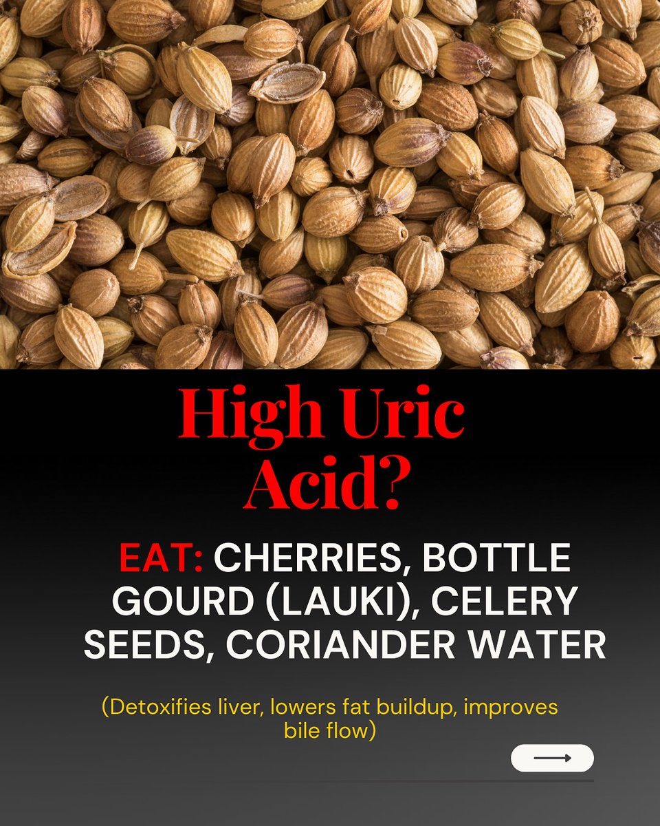 5️⃣ High Uric Acid? Got joint pain or stiffness? Try cherries, bottle gourd (lauki), celery seeds, and coriander water. They help flush out toxins, reduce inflammation, and support better kidney function. https://t.co/tN12vG3zdZ