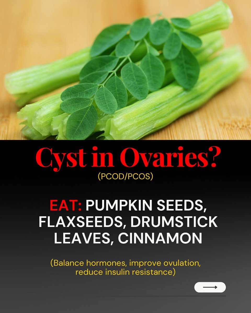 6️⃣ PCOS / Ovarian Cysts? Struggling with hormonal imbalance or irregular periods? Eat pumpkin seeds, flaxseeds, drumstick leaves, and cinnamon. These balance hormones, boost ovulation, and reduce insulin resistance naturally. https://t.co/FGqQRGloHG