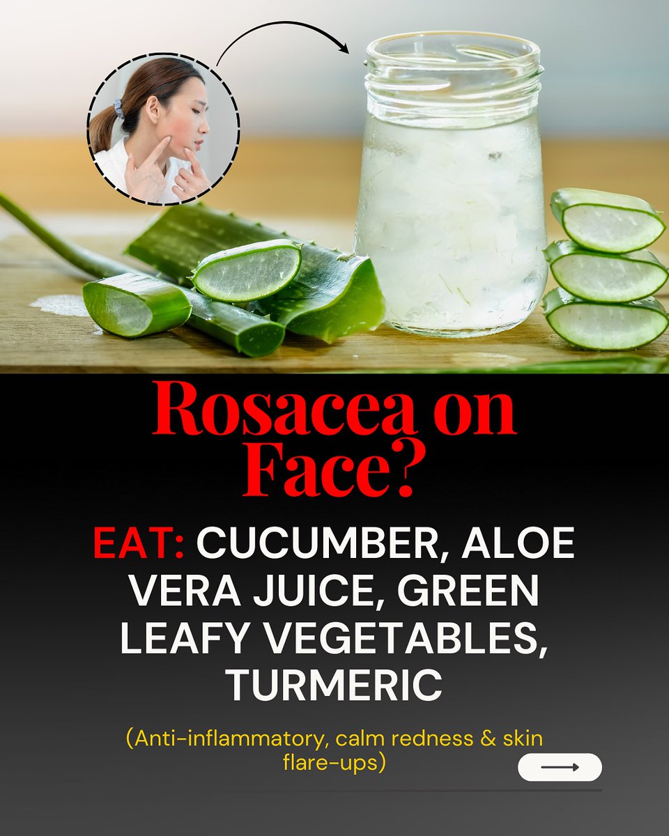 8️⃣ Rosacea or Redness on Face? Tired of flare-ups and sensitive skin? Go for cucumber, aloe vera juice, green leafy vegetables, and turmeric. These calm inflammation, cool the skin, and reduce redness over time. https://t.co/vGTFBOVKvg