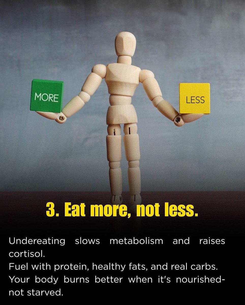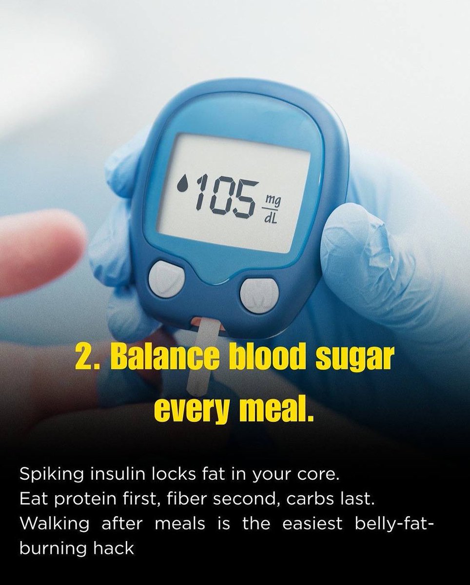 5. Step 1: Burn the fat ✅ Lift 3–4x/week → Build muscle, boost metabolism ✅ Walk 7–10k steps → Fat burn w/ no stress spike ✅ Cut liquid calories → Ditch soda, juice, alcohol ✅ Eat 30–50g protein/meal → Satiety + muscle retention https://t.co/3v9zpVSqEF