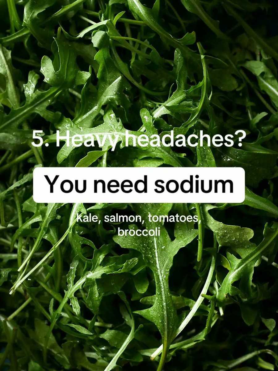 5. Constant headaches? → You could need more sodium (yes, really). Sodium helps regulate fluid balance and nerve function. Low levels can cause dehydration-induced tension. Get it from: → Kale → Salmon → Tomatoes → Broccoli https://t.co/ttRrnXWORG